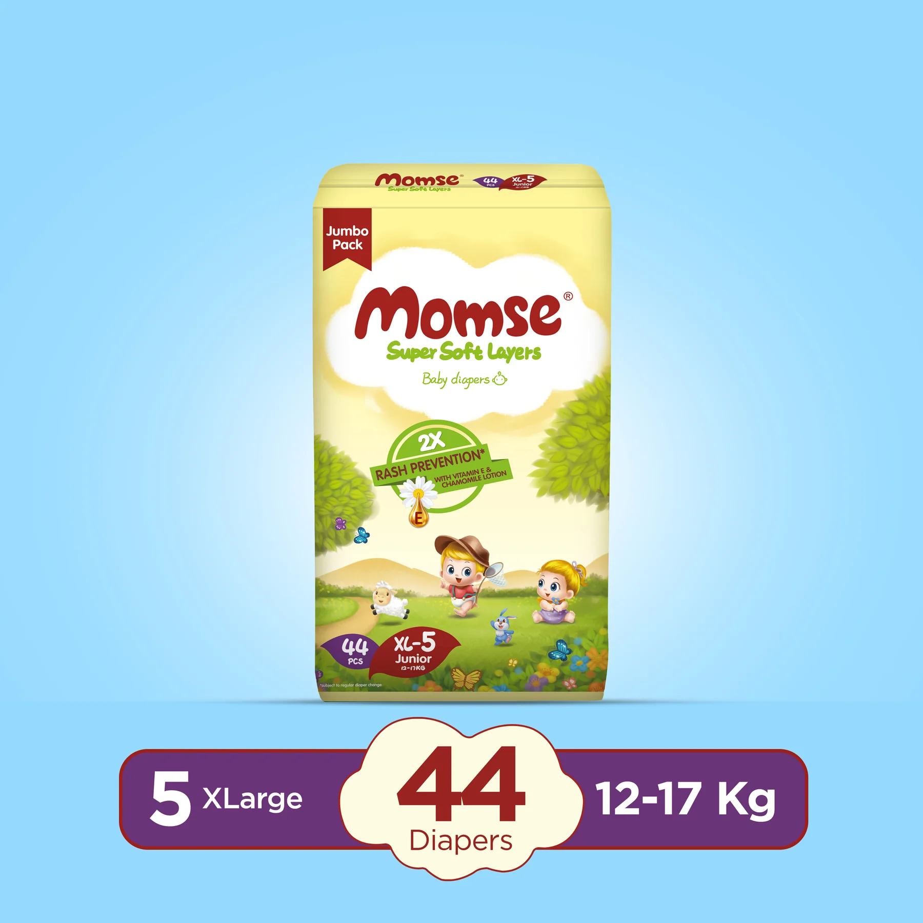 Momse Diapers – XL-5 (Junior) 12-17kg Jumbo Pack 44 Pcs